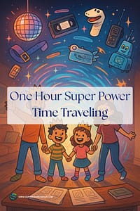 In this playful, one-hour bonding challenge, your family will jump across four time eras. You will be inventing, laughing, dancing, and storytelling your way to a sealed Time Capsule you’ll only open in the future. Perfect for kids and grown-ups who love imagination, memories, and neon snack references.